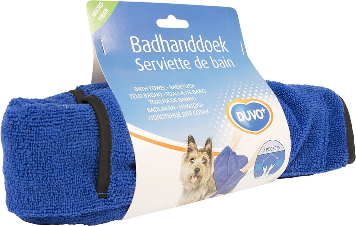 De Duvo+ Badhanddoek voor honden is gemaakt van microvezel. Dankzij dit snel vocht absorberende materiaal is uw hond snel weer droog na een zwempartij, wasbeurt of wandeling in de pletsende regen. De Duvo+ Duvo+ Badhanddoek voor honden is daarmee de perfecte beveiliging voor uw meubels, auto, muren en jezelf. Beschikt over twee handvaten zodat het afdrogen een stuk eenvoudiger wordt.