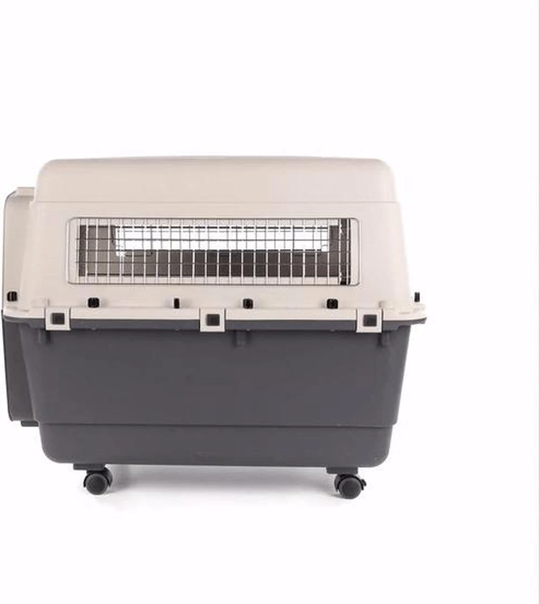 De Nomad Transportbox is geschikt om huisdieren te vervoeren met de auto, de boot, de trein of het vliegtuig. De transportbox voldoet aan de IATA richtlijnen. IATA staat voor ‘International Air Transport Assiciations’. Dat betekend dat deze niet geweigerd mogen worden door Europese Luchtvaartmaatschappijen. De box is voorzien van ventilatieroosters, een drinkbakje en vanaf maat L worden de transportboxen geleverd inclusief wieltjes zodat je ze makkelijk kunt verplaatsen. Verkrijgbaar in de kleur grijs en taupe.