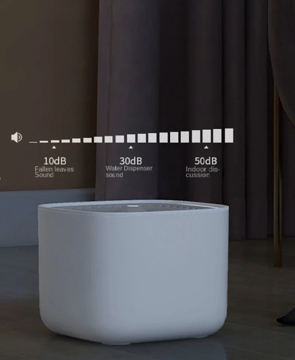 Het betreft een smart intelligence product, wanneer er voldoende water aanwezig is start de pomp en kleurt deze blauw. Wanneer er te weinig water aanwezig is kleurt de pomp rood en stopt deze de circulatie (om droogpompen en dus mogelijk kapotgaan van de pomp te voorkomen). Tevens is het mogelijk de stromingssnelheid van de fontein aan te passen.